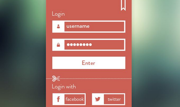 13: Full screen photos with flat login design by Luiz Carlos Cavalcanti