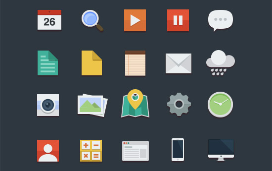 包含了 20 个简单平面的设计图标,提供的尺寸都是 114 x 114,提供 PSD 和 PNG 格式